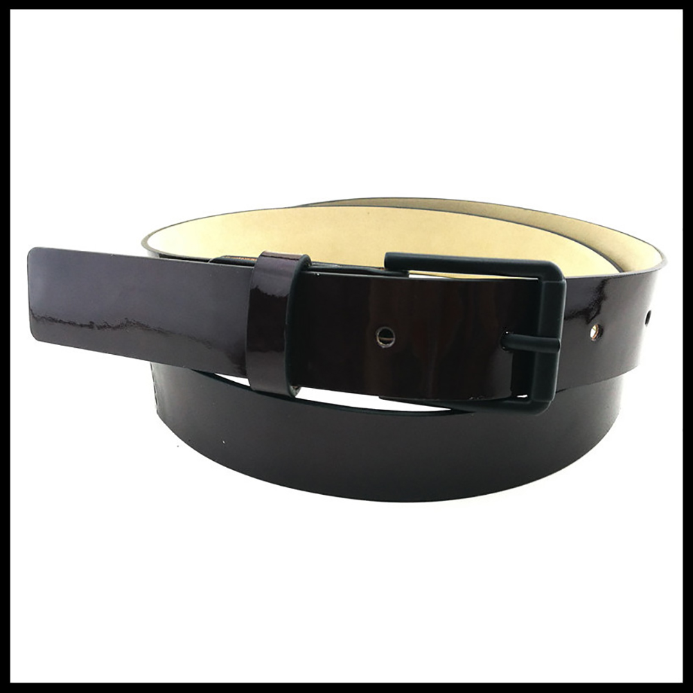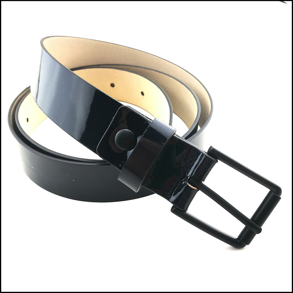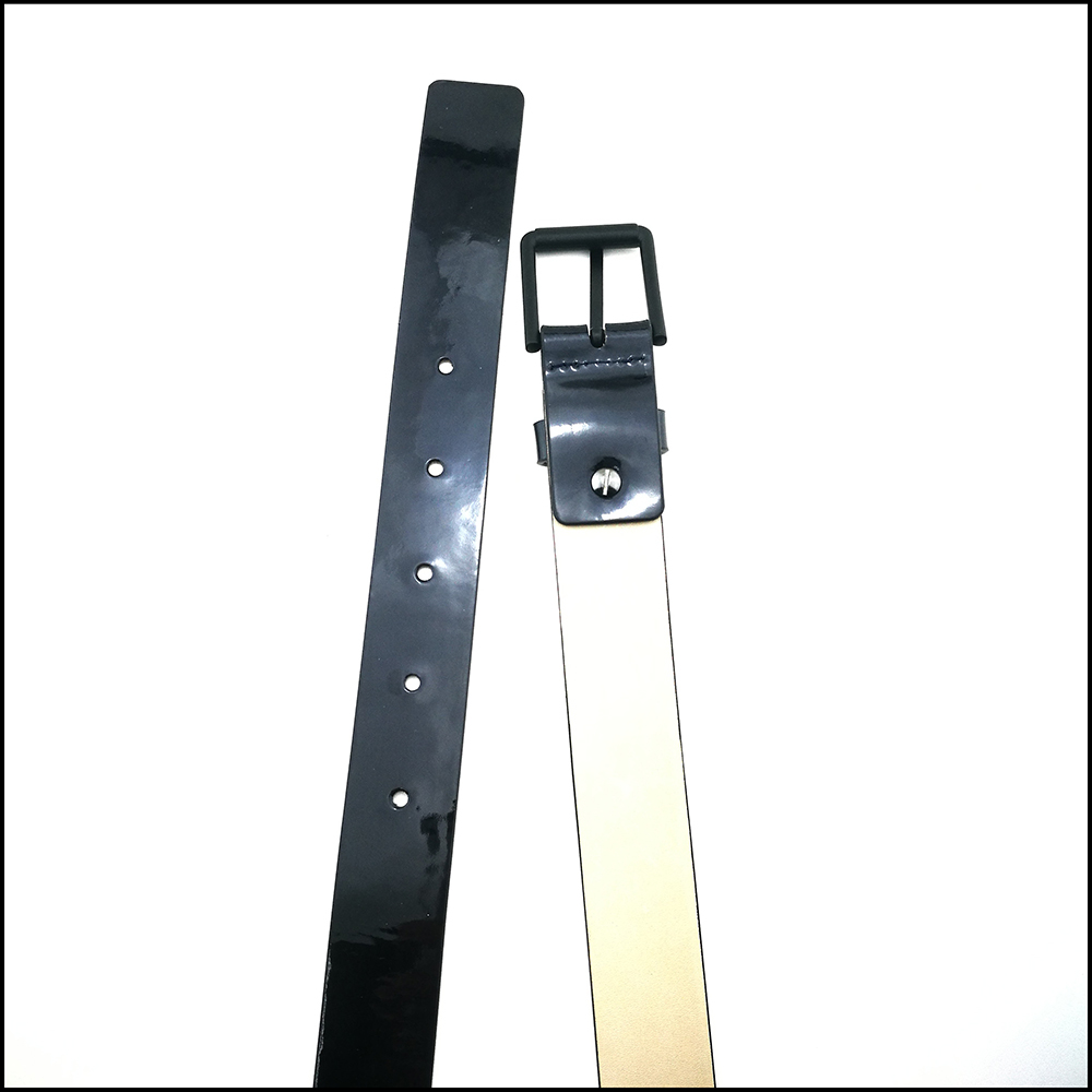 女款鏡面羊皮配米色真皮底腰帶